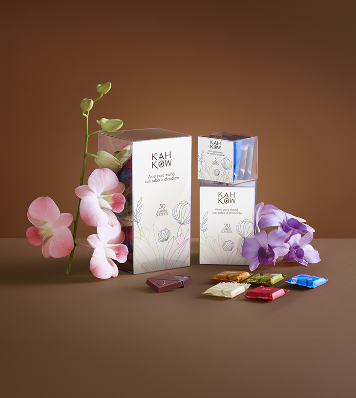 Surtido de todas nuestras recetas de chocolate semiamargo, empacados para la temporada.